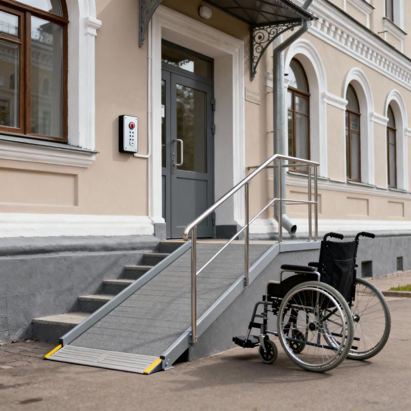 - Подсветка и контрастная окраска краев пандуса для слабовидящих